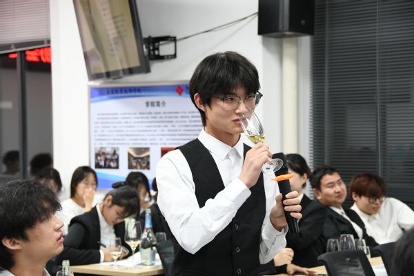 活动由中国酒业协会葡萄酒分会秘书长火兴三主持,文旅学院组织葡萄酒文化与营销专业全体学生进行线上观摩学习,并由学院礼仪队担任现场侍酒。线上公开课由中国农业大学战吉宬教授主讲,课程围绕加香葡萄酒和加强葡萄酒带领学生深入了解中国葡萄酒的气泡世界。实践环节由张文静和苏文文两位老师带领同学们共同品鉴来自中不同产区、风格各异的六款葡萄酒,现场气氛活跃,同学们纷纷积极分享品酒心得和活动感受。