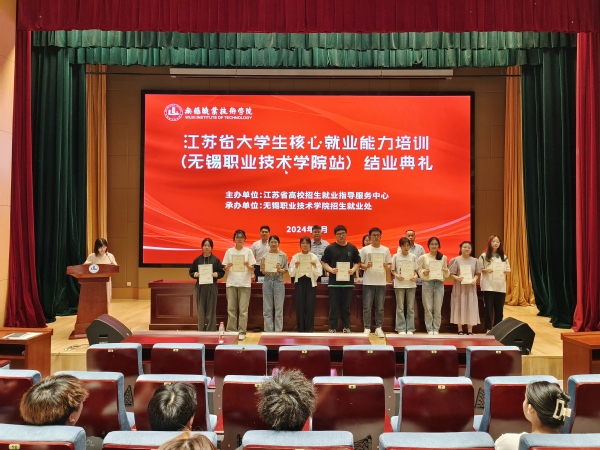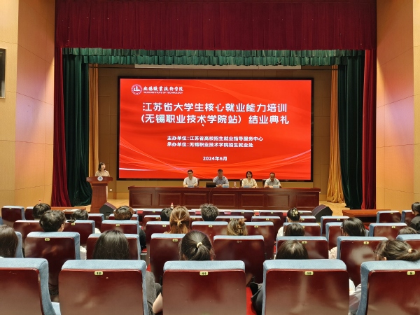 6月4日下午,江苏省大学生核心就业能力培训(无锡职业技术学院站)结业典礼在厚德楼一楼报告厅顺利举办。招生就业处处长房磊、校团委书记郑月圆、招生就业处副处长石华、校友代表石晴伟以及160名学生参加了结业典礼。