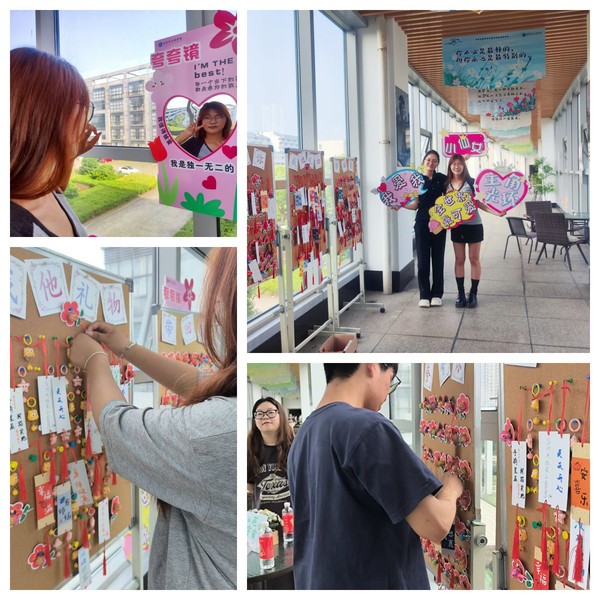 本次活动以多维度、多形式呈现,全面聚焦学子们的内心世界。在“悦纳自我,互赞同行”文化长廊环节中,学院匠心独运地布置了一条流光溢彩的“心灵驿站”长廊,悬挂着寓意深远的心理健康主题道旗。长廊中的“夸夸镜”让学子们驻足,通过自拍打卡的方式,表达自我赞美与鼓励,激发内心深处的自信与力量。而“赞美之树”环节更是别出心裁,学生们在墙上贴上赞美他人的小纸条,仿佛每一张纸条都化作了友谊之花,绽放在心灵深处。