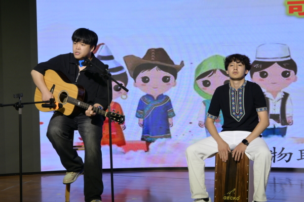 晚会中,少数民族辅导员塔依尔老师也加入了表演行列,与同学们共同演绎了一段民族舞蹈,展现了师生间的深厚情谊,为晚会增添了更多欢乐与温馨。此外,晚会还设置了民族知识问答环节,同学们争先恐后抢答,不仅增加了晚会的互动性,也让观众更加深入地了解中华民族文化的丰富多样和独特魅力。关工委老同志张燕为表现出色的同学颁发了奖品,对他们的积极表现表示肯定。