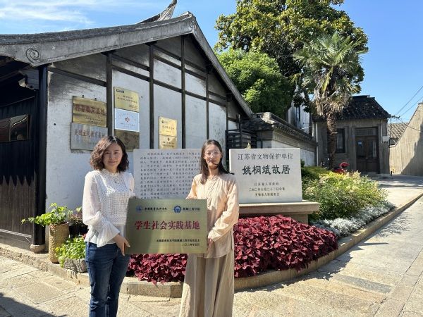 随后,学院党总支副书记王丽梅与黄土塘村工作人员骆心瑜,在科普教育基地、爱国主义教育基地、研学基地的姚桐斌的故居前进行了“学生社会实践基地”授牌。