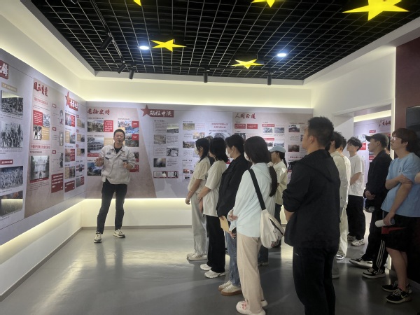 在一汽解放党建教育中心工作人员的带领下,师生一行参观了党史学习教育模块、榜样精神模块、党纪警示模块和廉洁家风建设模块。在整个参观学习过程中,党建教育中心项目负责人刘浩杰做了生动、细致地讲解,从“曙光微露—开天辟地—改天换地—翻天覆地—惊天动地”全方位展示了党的发展历史和熠熠生辉的伟大建党精神。在党纪警示模块,通过一个个典型案例警示全体党员引以为戒,高度重视党的纪律,自觉遵守有关规定,在平时生活中严格要求自己,筑牢党的纪律防线。此外,师生党员还在常华的带领下,在顾健劳模创新工作室参观学习,并现场聆听了顾健技能创新的奋斗历程和成果分享。