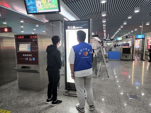 活动现场,志愿者们先将地铁站出入口不规范、乱停乱放的车辆摆放整齐,并及时劝阻停车不规范的行为,宣传文明停车理念,号召文明停车。随后,经过地铁站的培训后,志愿者们前往地铁售票处进行引导,协助乘客使用自助售票机,解答各类票务问题,帮助初次使用地铁或对智能设备操作不熟练的乘客顺利购票。