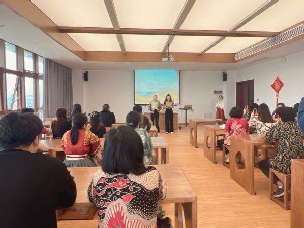 为切实提高留学生汉语水平、加深中国文化体验,4月16日下午,国际教育学院于崇德楼孔子课堂举办2024年度首场汉语角活动——春日诗会。国际教育学院全体师生、校读者协会及汉服社成员共同参与,关工委副主任徐晴出席活动。