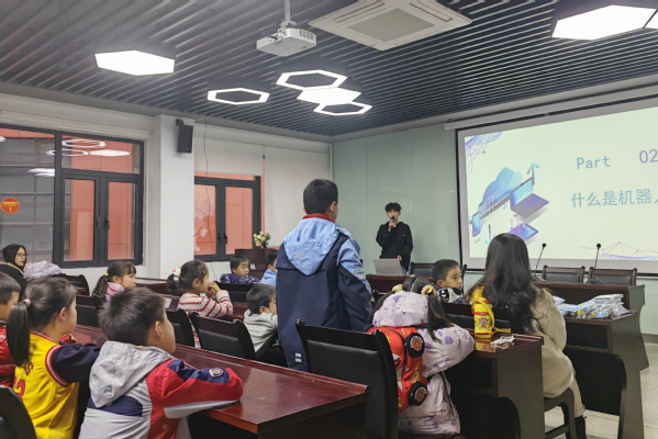 2024年3月5日是第61个学雷锋纪念日,为进一步传承和弘扬雷锋精神,践行大学生志愿服务,在控制工程学院党总支的组织下,机器人协会于3月4日下午开展了小学生人工智能科普讲座和科技小制作活动。来自周边几所小学的近三十名小朋友参与了此次活动。
