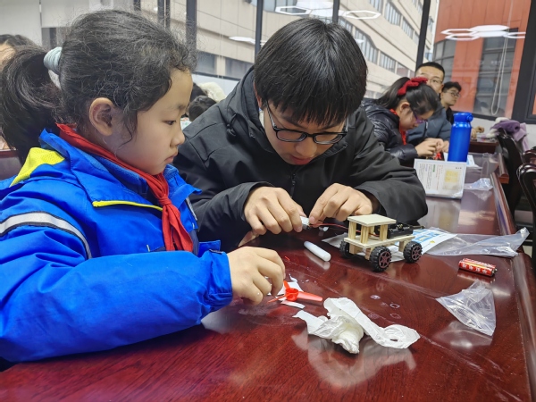 社团同学们精心准备了机器人技术讲座、互动问答,和科技小制作材料,活动中积极耐心地与小朋友们互动交流,协助完成了越野车、爬虫机器人、液压挖掘机、手摇发电机等产品的制作。活动让小朋友们体验了科学探究的过程,培养他们对科学的兴趣,机器人社团的同学们结合自身工科专业知识,在制作过程中给予细致的指导,启蒙了小朋友们的科技创新意识。小朋友们在玩中学、在学中玩,感受了科学知识的无穷魅力。