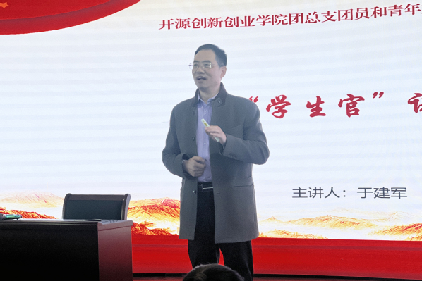 为扎实推进面向广大团员和青年开展学习贯彻习近平新时代中国特色社会主义思想主题教育,提升学生干部思想政治领悟力和干事服务执行力,坚持党旗所指,团旗所向,1月2日下午,开源创新创业学院红创讲堂第五期邀请无锡市工商联原副主席、必赢客座教授于建军为学生党员、新任学生会、分团委学生干部和各班骨干开展了题为《从“学生官”说开去》的讲座。