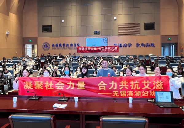 2023年12月1日是第36个“世界艾滋病日”,为普及艾滋病防治知识,增强青年学生预防艾滋病及自我保护意识,11月28日下午,校团委联合无锡市滨湖区妇幼保健院在厚德楼一楼报告厅举办艾滋病防治专题讲座,无锡市疾病预防控制中心主任医师贾天剑主讲,150余名师生代表参加。