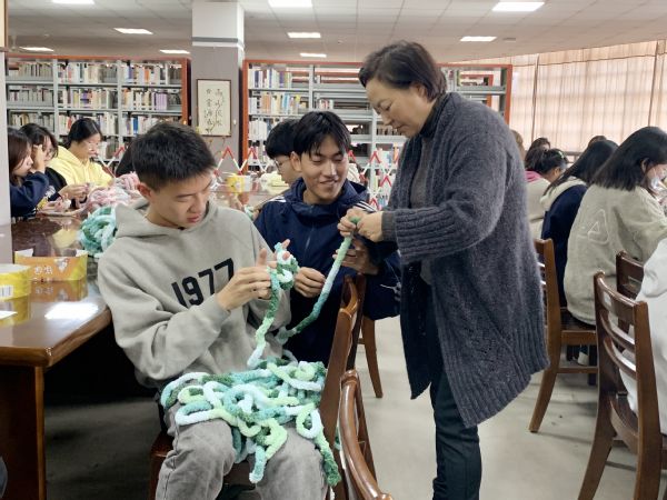 一条自己动手,富有创意的围巾,靓丽一冬,温暖一冬。在编织过程中,来自校图书馆的王继红老师耐心地手把手辅导,同学们互相请教、探讨交流,毛线飞快地在手中穿梭,现场气氛温馨美好。经过一个多小时的努力,围巾编织大功告成。同学们拿着自己的得意之作,纷纷表示要在下一个寒潮到来前把围巾送给家人、朋友、恋人或者自己。