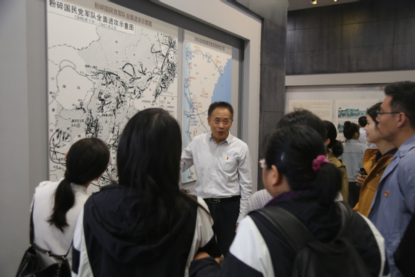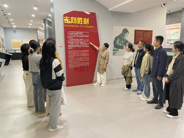 青年教师围在老同志身边聆听谆谆教诲,一同观看馆内烈士遗像、手稿、武器、信件等,深深体会到中国共产党百折不挠的奋斗精神和不怕牺牲的奉献精神,表示自己不但会以身作则,牢记嘱托,更会教育引导广大学生学党史,明真理,爱祖国。