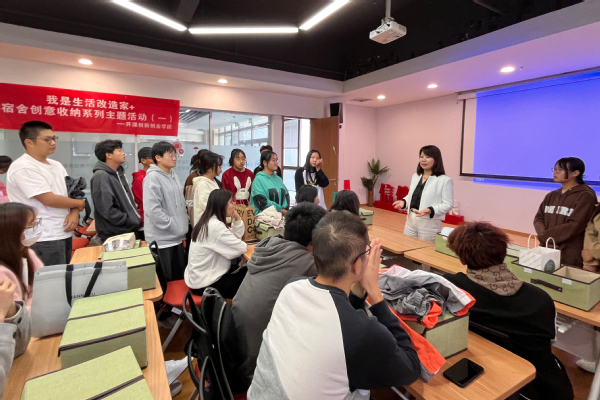 开源创新创业学院40多名新生宿舍长参与了本次实践活动。活动分为筹备、教学和实践三个阶段。在筹备阶段,开源创新创业学院紧扣活动主题展开了全方位的调研。调研内容涵盖学生居住环境、收纳空间、兴趣意愿等多方面,为活动开展夯实基础。在教学阶段,主讲人施红珍围绕环境设计、收纳方法、收纳技巧等三个方面进行授课,并且通过“沉浸式”案例教学激发了学生浓郁的学习热情。实践阶段中,参与活动的宿舍长充分发挥创造力和想象力,将课程内容转化为自身作品,高度创新作品的生成提升了其体验感。学生们纷纷表示,本次创意主题活动模式新颖、内容丰富和代入感极强,通过本次活动的参与,在掌握了实用技能的同时,深入理解了新时代大学生创新创业精神的内涵。