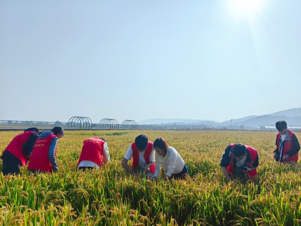 春种一粒粟,秋收万颗子,五百亩金黄色的稻田里充盈着丰收的气息。在嶂青社区原书记、控制技术学院校外辅导员殷娟老师的介绍下,同学们对水稻的种植收获有了更清晰的认识:秧苗的培育、插种、除虫除草、施肥、灌排水、采收、脱粒,丰收来之不易,是深耕细作、辛勤付出的甜美成果,更是农业农村现代化的生动体现,五百亩稻田马上迎来自动化收割。王佳威同学感慨到:“我学的就是工业过程自动化专业,机械化和自动化助力农业种植和收割,我要用自己的专业为助农兴农作出贡献。”实践课堂实现了专业课堂的有效延展,同学们在田间地头感受采摘水稻的喜悦同时,也树立了利用专业投身乡村振兴的职业理想。