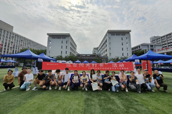 推普周伊始,下设于基础课部的语言文字工作委员会便率先行动,通过悬挂横幅,电子屏滚动播放、发放宣传册等方式来积极营造推普氛围。9月12日,基础课部大学语文教研室的老师们在大学生活动中心前足球场组织开展了“推普闯关打卡”活动。该活动由朗读词语、看图猜成语、绕口令、根据情境背诵古诗词、语言文字知识问答五个环节组成。参与活动的同学可在现场领取打卡明信片,闯过一关即可盖章一次,集得一定数量的印章即可获得相对应的纪念品。活动现场,学生们络绎不绝,反响热烈。各个活动环节的设置检测了学生们的普通话水平,同时调动了学生参与的积极性,引导学生进一步说好普通话,用好规范汉字。