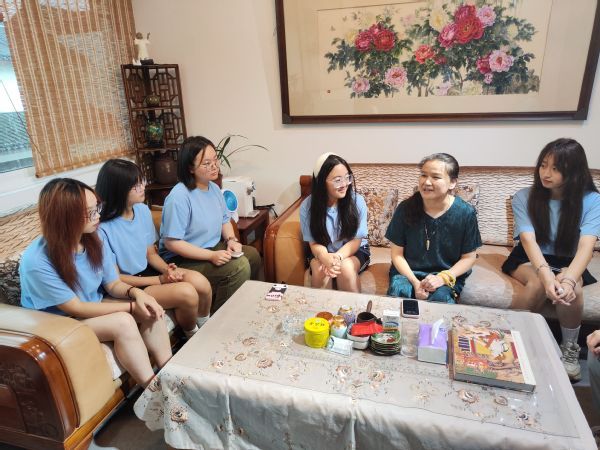 当小队成员问起蔡老师,对从事苏绣这个事业的感受时,她说:“刺绣是一门需要大量时间和许多精力的差事,只有耐得住寂寞的人才能坚持下来。要永远心存善念,心怀感恩,脚踏实地坚持去做好自己的事情。”说出这句话的时候蔡老师的眼神里充满着坚定和热忱。蔡老师从十几岁就开始学习苏绣了,那时候经济没有现在那么发达,送一幅绣品需要步行7个小时。走到天黑了,即使走累了,也不舍得花钱住旅馆,撑着疲惫的身体继续前行,因为那时一天的收入不足以支付住宿费用。现在生活条件变好了,大家才能更加静得下心来去做苏绣。现在的她非常感激党和国家提供的好的生活,一直心怀感恩,心存善念,一心一意做好苏绣事业,用心用情保护好和弘扬好国家的非物质文化遗产苏绣,尽自己的力量去帮助一些力所能及去帮助的人。