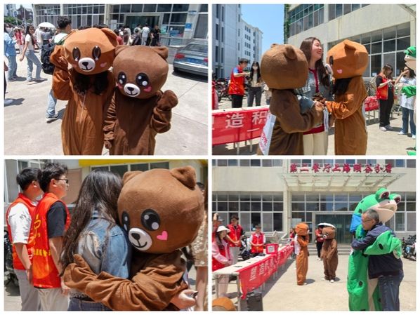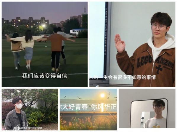 在原创短视频比赛中,学子们踊跃参与,通过心理健康原创短视频的输出,以青年学子喜闻乐见的形式宣讲既有知识性又有趣味性的心理健康知识。桃园宿舍楼前,4个身着卡通服饰的可爱人偶整装待发,在众人惊喜期待的目光下,“爱的抱抱”活动正式拉开序幕,过往的同学们纷纷参与现场的签名活动,在“5·25”这个特殊的日子里写上最想送给自己的话,并与人偶互动拥抱,拥抱缓解了彼此的压力,活动现场弥漫着温暖和谐的气息。5月25日下午,心理彩绘活动在综合楼一楼大厅开展,来自全校的40多位同学用手中的画笔,呈现出“积极的人格——乐观”、“积极的关系——友谊”、“积极的行动——运动”、“积极的心理——感恩”四个模块的创意手绘。手绘过程持续了近2个小时,在画笔和颜料的流动中,营造出健康向上的积极心态,传递了青春正能量。