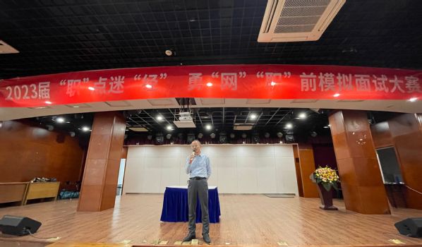本次大赛经过前期宣传、作品征集、简历拼比,最终有19名同学通过初赛,获得模拟面试决赛入场券。决赛前,周陆飞致开幕词,他表示关工委老同志一直关注着学生就业情况,并用切身体会和亲身经历引导学生重视就业准备。