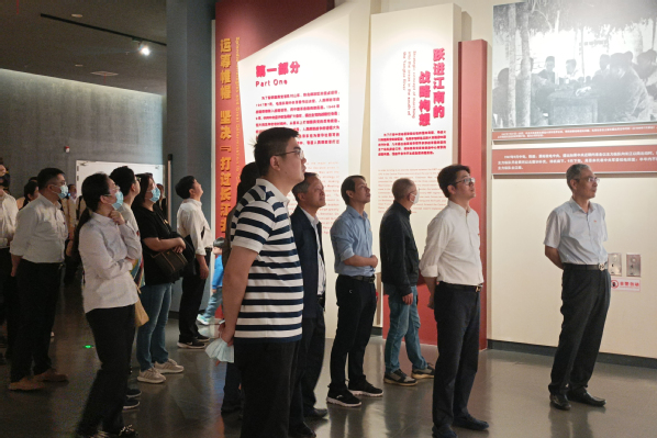 第二站来到南京渡江胜利纪念馆。渡江胜利纪念馆是南京市纪念南京渡江战役胜利而建造的一个红色地标。进入纪念馆广场,首先映入眼帘的是渡江战役第一船——“京电号”小火轮,让大家感受到70多年前百万雄师过大江的豪情。走进主馆区,大家通过场景模拟、历史影像、文物、图片等,全方位地了解了人民解放军取得渡江战役胜利的光辉历程,再一次领略了那段惊天动地、波澜壮阔的革命岁月。