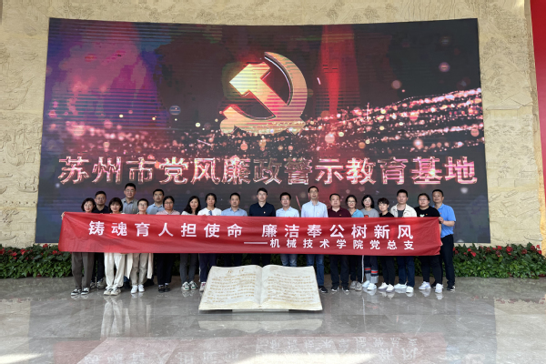 为深入开展学习贯彻习近平新时代中国特色社会主义思想主题教育,落实二十届中央纪委二次全会和十四届省纪委三次全会精神以及学校全面从严治党会议的部署要求,持续推进机械技术学院党风廉政建设,提升党员干部廉洁自律意识,副校长奚茂龙、校纪委书记李衔、机械学院党总支领导干部在“五一”劳动节来临之际,带领教师党员代表于4月28日赴冯梦龙廉政文化教育基地、苏州市党风廉政警示教育基地开展“铸魂育人担使命,廉洁奉公树新风”党风廉政教育活动。