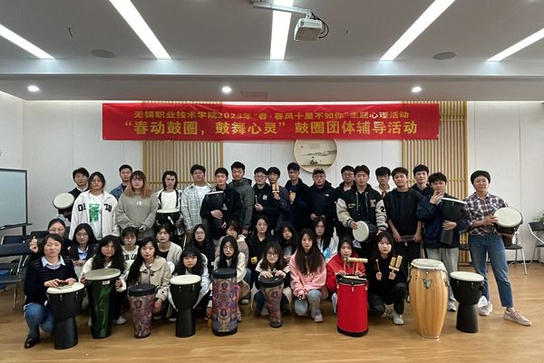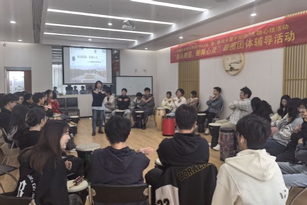 “鼓圈”活动是很流行的一种即兴团体演奏形式。4月25日下午,学校学生处大学生心理健康教育中心、设计艺术学院“一亩心田”辅导员工作室联合举办了学生音乐鼓圈团体体验活动。来自全校各二级学院共38名同学一起参与了活动。本次活动由“一亩心田”辅导员工作室负责人林佳燕老师、心理中心刘福莲老师带领。在引导师带领下,同学们了解了鼓圈的基本常识,并现场感受了鼓圈在心理疏导和情绪调节方面的作用。