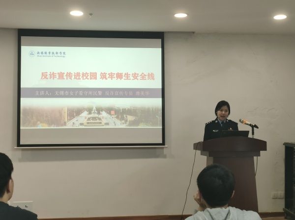 近年来,校园电信网络诈骗案件频发,不法分子利用在校学生社会经验不足、防范意识较差等弱点,将罪恶的黑手伸向了校园,不少同学成为电信网络诈骗犯罪的受害者。为进一步强化学生安全防范理念,筑牢安全防线,4月26日下午,校团委在青智库组织开展“我为同学做件事 | 反诈宣传进校园”活动,并特邀无锡市女子看守所民警、反诈宣传专员唐美华警官亲临现场为同学们开展宣讲。