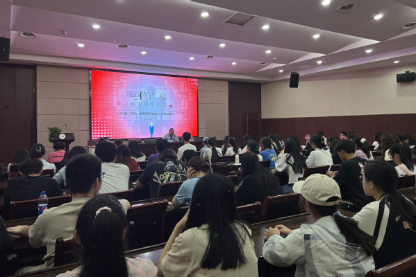 王德浩以近期高发的电信犯罪案例导入,让同学们了解新型网络犯罪的常见手段,随后以案释法,通过法院判罚的在校大学生多发的案件,为同学们详细分析了当前通讯网络诈骗的形式和种类以及大学生可能因无知导致的违法犯罪行为。最后,他向同学们进行普法教育,提醒广大学生掌握防诈技巧,避免次生危害。