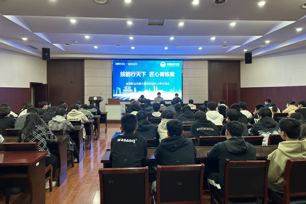 章乐康同学从参赛初心、训练历程、参赛收获三个方面分享了自己的备赛竞赛经验,他介绍了学校软件硬件对于大赛的支持情况,从往届优秀选手的获奖情况和职业发展路径明晰了参赛的决心,他表示参加技能大赛是为了更好学习实用技能、锻炼意志、丰富阅历、传承工匠精神。邢铖同学用真诚朴实的语言、真实的故事讲述了自己作为一名普通学生如何从梯队成员参与备赛、中途自我否定退出团队、半年后重返赛场并参赛获奖的亲身经历。通过朋辈的分享交流,帮助同学们提高参赛竞赛的热情,进一步树立奋斗目标,激励更多学生求真学问、练真本领,扬青春风貌、做工匠传人。