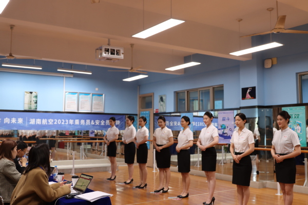 湖南航空公司为期两天的招聘会设有初试、复试两个环节,重点考察应聘者的外在形象、服务意识、沟通能力和英语水平等。招聘会现场,应聘者们妆容整齐,按照要求有条不紊地进行各环节的应试。通过资料审核、学历验证等环节的应聘者,还需通过身高复测、形体考察等初试环节,才能进入复试环节。通过终复试环节的应聘者经过体检及系列资格审核后,后续将进入湖南航空公司参加培训。