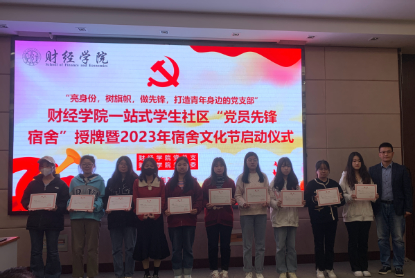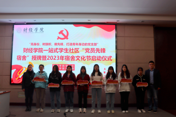 3月28日,财经学院在国际交流中心二楼报告厅举行开展“一站式”学生社区“党员先锋宿舍”授牌暨2023年宿舍文化节启动仪式,财经学院党总支书记李湘、学生处副处长周勋勋以及50余名师生党员、入党积极分子参加了授牌暨启动仪式。