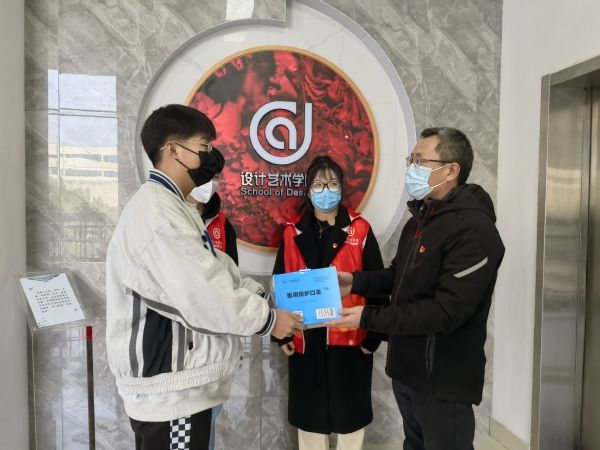 学院坚持问题导向,在前期调研中,了解到了学生普遍存在N95口罩紧缺的需求。学院党政联席会议随即研究决定,帮助学生解决购买防疫物资的问题,为在校学生免费发放口罩。12月12日下午,学院将紧急采购的500只N95口罩,发到到各班同学手中。“学院能想同学所想,急同学所急,非常暖心!”设计艺术学院2020级蔡天伟同学对学院派发口罩的举措表示感谢。党总支书记苗勇提醒同学们提前规划好返乡行程,做好防护,做守护自身健康的第一责任人,理性看待疫情,做好心理建设。