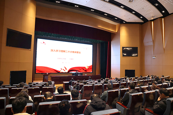 于建军的报告以标题闪耀新思想、金句点亮新思想、学习贯彻新思想三个部分,结合职业教育发展、学校党代会报告、师生期盼等方面,从历史与现实多个维度,全面论述了党的二十大重大意义、报告的精神要义、贯彻落实报告要求的方法途径等内容。报告提纲挈领、内容丰富,与实际联系紧密,为大家深入学习和领会党的二十大报告精神提供了指导。