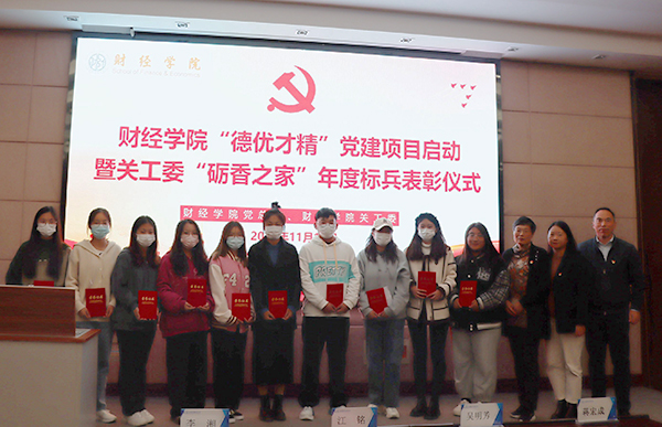 11月15日,财经学院党建品牌项目“德优才精”启动暨工委“砺香之家”年度标兵表彰仪式在国际交流中心二楼报告厅举行,财经学院相关负责人、校关工委老师和70余名分党校学生代表参加了启动暨表彰仪式。