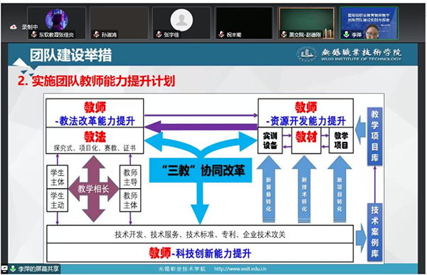为贯彻落实《关于推动现代职业教育高质量发展的意见》《教育部办公厅关于进一步加强全国职业院校教师教学创新团队建设的通知》等文件精神,进一步推进“双师型”教师队伍高质量发展建设,积极探索新时代职业教育教师教学改革创新与实践,梳理总结信息通信领域教师教学创新团队的建设经验和做法,由全国工业和信息化职业教育教学指导委员会通信职业教育教学指导分委员会指导,中国通信学会职业教育工作委员会主办,必赢院承办的“国家级职业教育教师教学创新团队建设实践与探索”线上公益培训于11月18日成功举办。本次培训共有来自全国各地的30余所院校的三百余名老师参加。