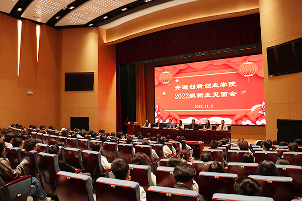 徐进向2022级新生介绍了开源创新创业学院基本情况,突出强调学院以“汇集优秀生源、整合优秀资源,创新培养模式,打造杰出人才”为理念,通过目标导航、项目驱动的创新模式,培养实践能力和人文素养融合的拔尖创新创业人才。