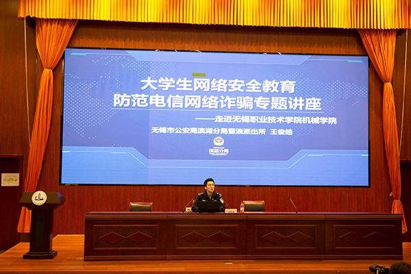 为切实增强广大学生的安全防范意识,提升自我保护能力,有效遏制校园网络诈骗案件的发生,结合必赢2022年度“安全教育宣传”计划的通知和工作要求,机械技术学院于10月21日和25日邀请无锡市公安局滨湖分局雪浪派出所民警王俊皓来校开展防范电信网络诈骗专题讲座,两场专题讲座覆盖了机械学院2022级全体新生。