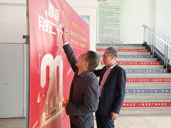 10月12日中午,另一块展板“用我的承诺,为二十大献礼”在教工食堂门口展出,校领导和广大教师们纷纷驻足,在展板上签名,接力承诺,携手共迎二十大,共圆强校梦。