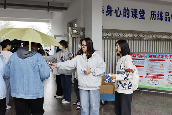 活动由后勤管理处和学生志愿者共同组织开展,通过摆放展板、现场宣讲等方式围绕疾病的认知、传播途径、防治措施等3个方面内容进行宣传,引导师生了解艾滋病及其预防知识,正确对待艾滋病患者。活动现场发放检测材料近2000份。