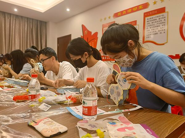 老师与同学们DIY制作了玉兔灯,通过拼接、粘贴、点灯、定型等步骤,一盏盏活灵活现的兔子灯诞生了,有的眺望、有的酣睡,呆萌可爱,点燃了节日的氛围,更承载了一份厚重的思念。