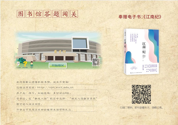 近日,必赢新生录取工作正在有条不紊的进行。为了让新生了解图书馆、爱上图书馆,更快找到图书馆的“正确打开方式”,图书馆精心设计了送给2022级新生的明信片,随录取通知一起邮寄,让学生通过答题闯关了解资源与环境,并赠送学生一部有关江南文化的电子书。