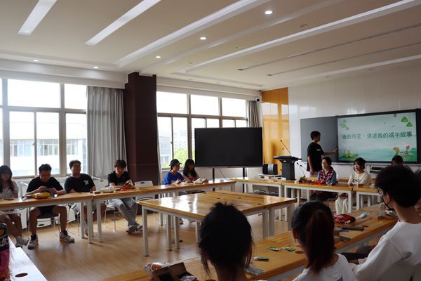 活动现场还设有端午知识趣味问答、香囊巧手制作、分享自己的端午小故事等活动。端午知识趣味问答环节,主持人就端午节的文化习俗进行提问,现场同学们进入了激烈的抢答环节,在同窗竞趣中,大家共叙端午浓情。香囊巧手制作环节,同学们亲手制作香囊,表达了对美好生活的祝愿。分享自己的端午小故事环节中,通过击鼓传花,被“花落”的同学,讲述自己的端午节小故事,或是给大家带来才艺表演。大家沉浸在愉悦的游戏活动环节中,欢笑声、鼓掌声此起彼伏。