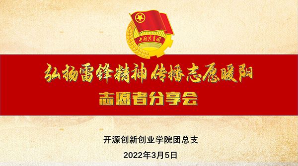 雷锋精神人人可学,奉献爱心处处可为。3月5日是“学雷锋纪念日”,也是第23个“中国青年志愿者服务日”,开源创新创业学院团总支在线上举办主题为“弘扬雷锋精神 传播志愿暖阳”的志愿者分享会。开源创新创业学院党总支副书记徐进、校团委徐娜娜老师和100余名学生一起,聆听了志愿者们的倾情讲述。