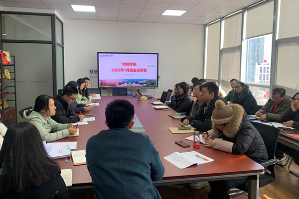 为进一步强化班级学生管理,做好学期最后阶段班级管理工作, 1月11日,财经学院在明德楼B四楼会议室召开期末班主任工作会议。学院党总支副书记李湘、全体班主任及辅导员参加此次会议。
