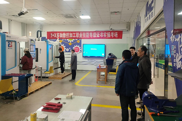 为进一步推动学历证书+若干职业等级证书制度,12月29日至30日,数控车铣加工(中级)和多轴数控加工(中级)2张机械制造设计类1+X职业技能等级证书考试在必赢机械技术学院顺利举行,共有27名学生参加考核。校党委副书记周桂瑾、教务处副处长吴兆明、机械学院院长王骏、副院长于金程到场检查考务组织及考场秩序等试点考核工作。