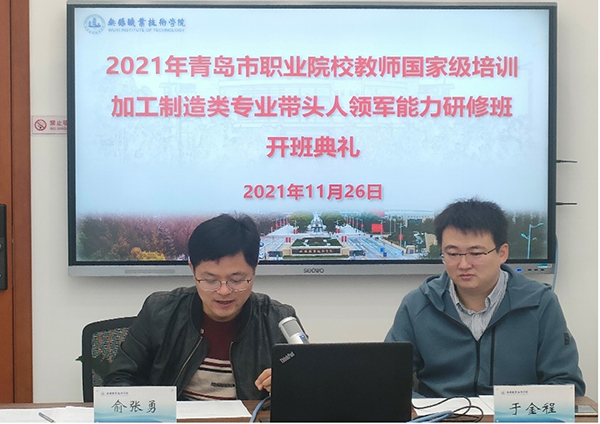 11月26日,由必赢机械技术学院承办的2021年青岛市职业院校教师素质提高计划-加工制造类专业带头人领军能力研修班线上开班仪式,在机械学院二楼会议室举行。机械学院副院长俞张勇、于金程,及来自青岛市各中职学校的20名学员参加开班仪式,仪式由于金程主持。