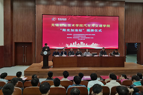 “教育的起点是人,教育的终点是人的幸福成长”。为积极探索德育新模式,11月23日下午,汽车与交通学院在国际交流中心一楼报告厅举行“阳光加油站”揭牌仪式。副校长杨雪琴、关工委秘书长江铭、学生处处长徐悦、汽车学院党总支书记邹晔出席仪式。
