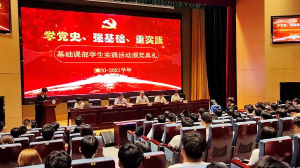 6月15日下午,基础课部在综合楼一楼报告厅隆重举行2021年度“学党史、强基础、重实践——学生实践活动”颁奖典礼,为前期的一系列学生实践活动画上圆满句号。学校党委副书记周桂瑾、教务处副处长乔巍、校团委书记赵健、基础课部主任王志萍、基础课部全体老师及获奖学生代表共180余人出席了本次典礼。颁奖典礼由基础课部直属党支部副书记王兰主持。
