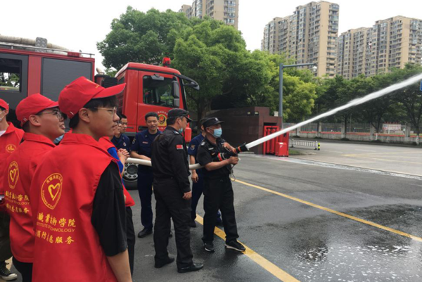 活动中,消防指战员介绍了各种消防装备的用途及其特点,现场演示了各类消防装备的使用方法。同学们通过亲身感受云梯、高压喷射枪,对消防装备的使用和消防的重要性有了更为直观与深刻的认识。