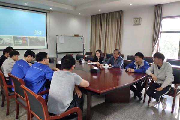 在与企业沟通后,到访的几位老师又与学生进行了座谈,面对老师们“突击”式的探望,学生们十分激动,这些来自汽车学院2018级不同班级的十几位同学兴奋地和老师们分享了在一汽解放锡柴汽车厂的点点滴滴。老师们收到了来自同学们对于实习企业的积极反馈,也看到同学们不怕苦累的实习风貌,向同学们传达了学校、学院领导对大家的关心和期望,也对同学们乐岗敬业的工作态度表示了充分的肯定,同时还要求同学们抓住宝贵的实习机会提升自我,在注意安全操作的同时加强与家长、学校的沟通,尽早落实工作,正式开启个人的职业生涯。