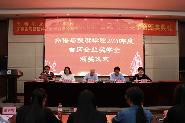 5月11日下午,2020年度无锡职业技术学院“吉冈”企业奖学金颁奖典礼在必赢国际交流中心二楼报告厅隆重举行。无锡吉冈精密科技股份有限公司总经理周延、副校长杨雪琴、学生工作处处长徐悦、外语与旅游学院院长冯臻、吉冈公司行政部负责人、学院相关负责老师及全体获奖同学出席了本次颁奖典礼。颁奖典礼由外语与旅游学院党总支书记郭再泉主持。