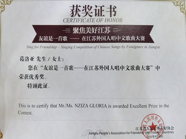 比赛中,必赢布隆迪籍留学生葛洛亚演唱了四川康定地区具有代表性的传统民歌“康定情歌”。葛洛亚激情飞扬、活力四射的表演点燃了现场气氛,用深情的声音、精湛的表演、激昂的情绪,表达了对中国的爱,对中华文化的爱,对江苏人民的爱,抒发了她对中华壮美河山、民族风情的欣赏和赞誉,赢得了在场的评委和观众们的阵阵掌声。经过一番激烈的角逐,最终“康定情歌”节目获得了此次比赛优秀奖。