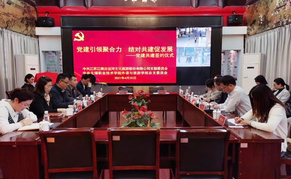 4月20日,外语与旅游学院党总支书记郭再泉带领师生党员30余人,赴南禅寺党群服务中心二楼,与江南古运河文化旅游股份有限公司党支部开展共建签约。江南古运河文化旅游股份公司党支部书记杜军、党支部副书记顾慧坚、公司副总屠建强等参加了活动。